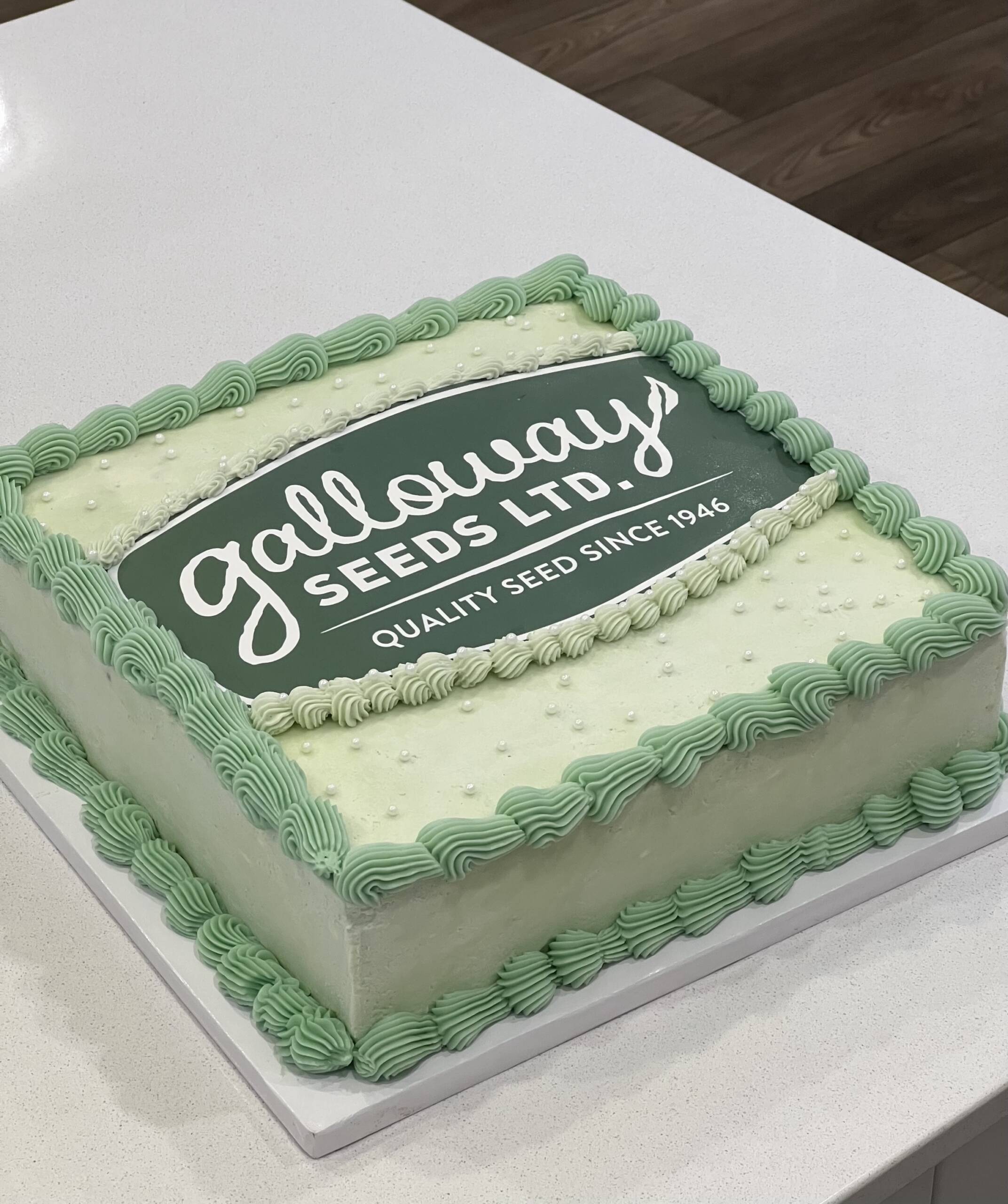 Design Style: Buttercream finish with piped borders & edible logo image